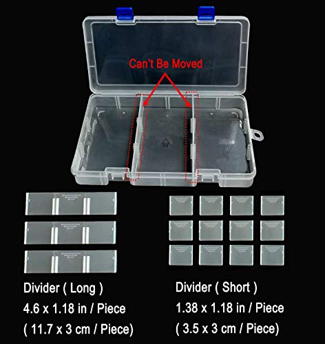【Griglia regolabile】Scatola organizer in plastica La maggior parte degli scomparti in queste piccole scatole di plastica può essere spostata. Puoi creare da 3 a 18 soggetti per soddisfare le esigenze individuali. ATTENZIONE: alcune partizioni non sono rimovibili. Si prega di fare riferimento all'immagine per i dettagli. Il chiavistello è separabile e può essere riattaccato se si staccano.