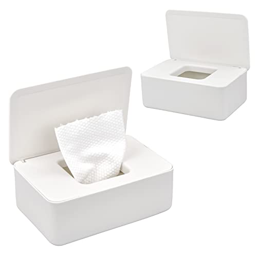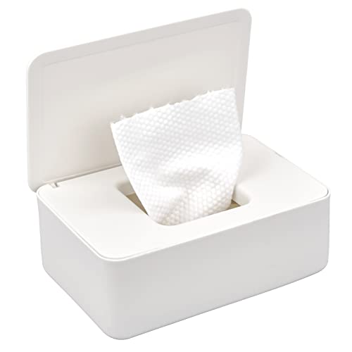 Scatola Porta salviette Umidificate, Dispenser per Fazzoletti e Salviette Umide, Contenitore per Salviette Umidificate con Coperchio Antipolvere, Contenitore per Salviette Umidificate (Bianco)