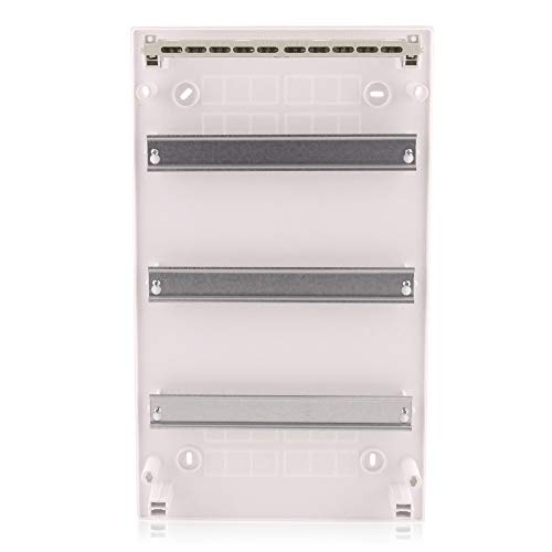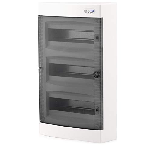 Robusta scatola portafusibili a 3 file per 36 moduli con porta trasparente per la protezione dei cavi e la distribuzione secondaria in appartamenti ed edifici. Dimensioni: ca. 287 x 526 x 112 mm.