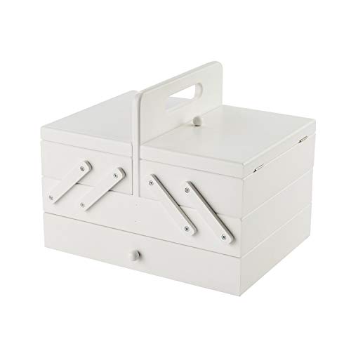 Scatola portaoggetti da cucito a sbalzo in legno 31 x 23 x 24 cm bianca con interni dal design geometrico di Sewing Online