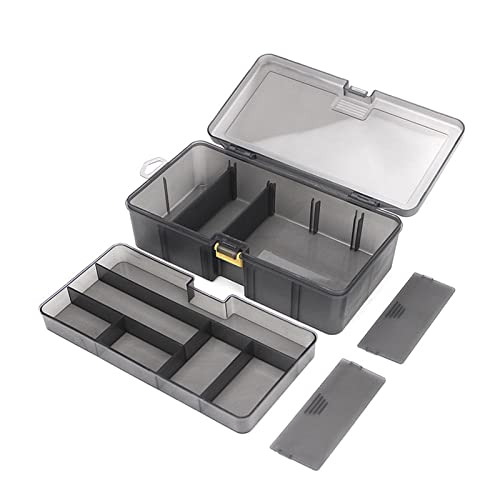 DOUBLE LAYER FISHING BOX-The fishing box has a double layer design, which can provide a large space for your belongings. You can freely adjust the size of the compartment to fit your bait accessories, and it is more durable and easier to use than the single layer general storage box.