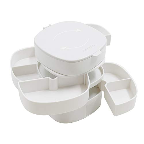 Scatola portaoggetti girevole per gioielli, 4 ripiani, girevole, con coperchio, per orecchini, anelli, collane, bracciali, regalo per ragazze, madri, donne (1 bianco)