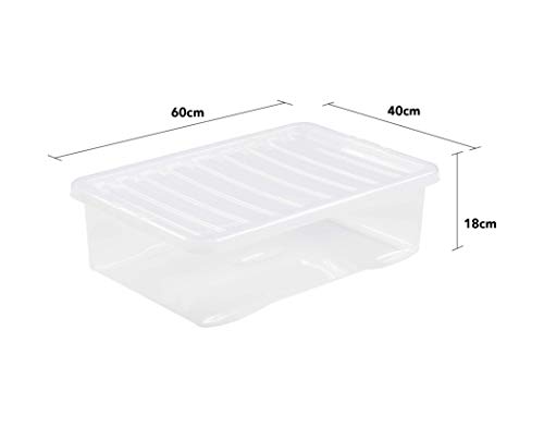 WHAM - Scatola portaoggetti in plastica trasparente con coperchio, impilabile, impilabile, 32 l, set da 5