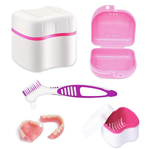 Scatola portaoggetti per protesi dentaria, contenitore per protesi dentaria con filtro, spazzole per la pulizia della protesi dentaria, per la pulizia della conservazione dei denti finti, rosso, rosa