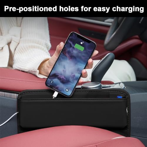 Scatola Portaoggetti Per Seggiolino Auto asca Laterale Sedile Auto, Multifunzionale Tasca Laterale per Console Auto Organizer Auto in PU per Console Auto, Universale, per Telefoni Cellulari(Noir)