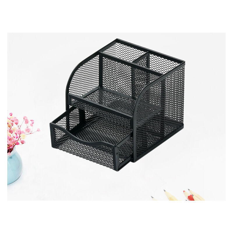 Questo organizer per vassoio da scrivania massimizza lo spazio sulla scrivania, si adatta a qualsiasi arredamento e tiene da parte le forniture, ma è facile da trovare. Gli accessori per la tavola della collezione Mesh hanno un aspetto industriale semplice ed elegante con una robusta struttura in metallo .
