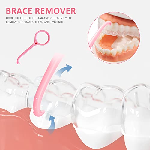 【Facile da usare】Con questo strumento di rimozione delle parentesi graffe, posizionare il dito indice attraverso l'anello, tenere l'anello di trazione dell'allineatore, utilizzare l'anello di trazione della punta, agganciare il bordo dell'anello di trazione e tirare delicatamente, rimuoverlo lentamente quando il supporto è allentato.
