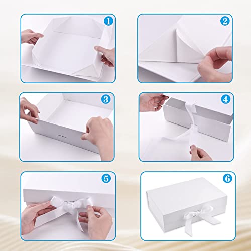Scatola Regalo, Scatola di Cartone Regalo, Scatola di Cartone Regalo Scatola Regalo Riutilizzabile Magnetico, Scatole Regalo con Nastro,Scatola Regalo con Fiocco (Colore bianco)