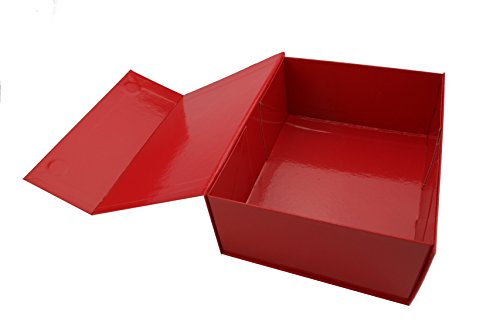 Scatola regalo magnetica, di colore rosso, consegnata piatta, da assemblare, 21 cm x 17 cm x 9 cm