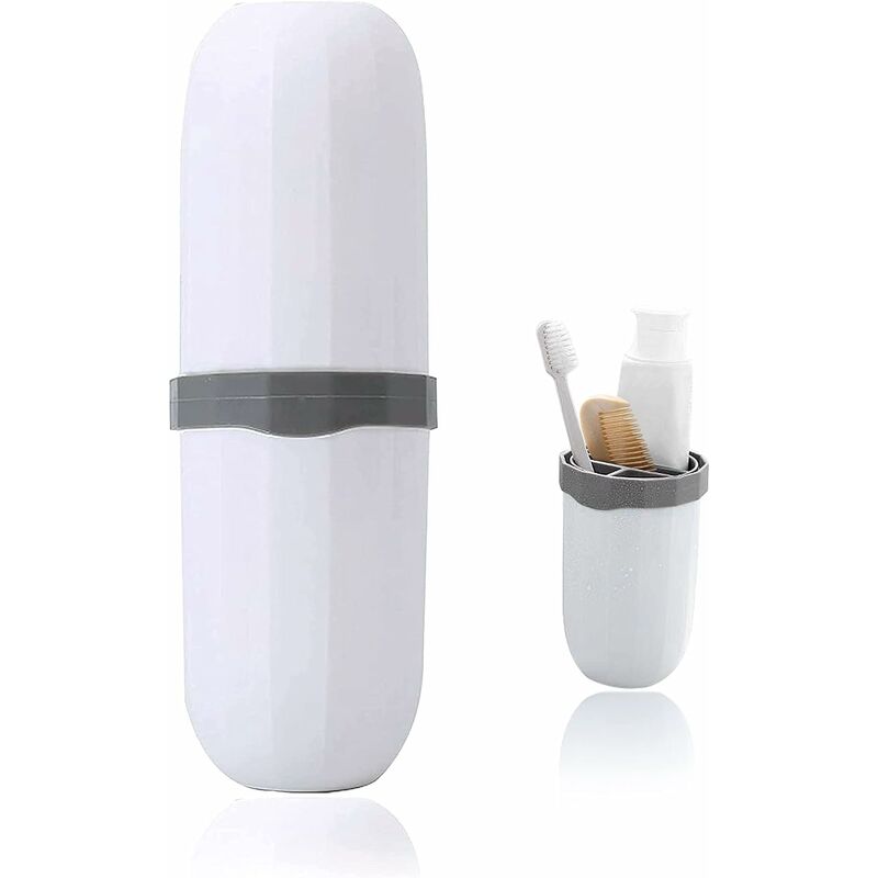 Realizzata in materiale PP ecologico per uso alimentare, la custodia dello spazzolino da denti è inodore, leggera e resistente.Le dimensioni sono di circa 8 x 8 x 22 cm, le dimensioni portatili sono comode da trasportare in una valigia e in uno zaino.Questo 3 in 1 tube è un portaspazzolino e una tazza per il lavaggio, si apre al centro ed è disponibile in 3 parti: due tazze e un cerchio con 4 scomparti per riporre separatamente gli spazzolini e il pettine.La superficie satinata del tubo ti aiuta a tenerlo saldamente, e il il fondo antiscivolo impedisce che cada dal lavello scivoloso.Può contenere 2 spazzolini da denti, 1 dentifricio e 1 pettine a denti fini, perfetto per viaggi di lavoro e viaggi.