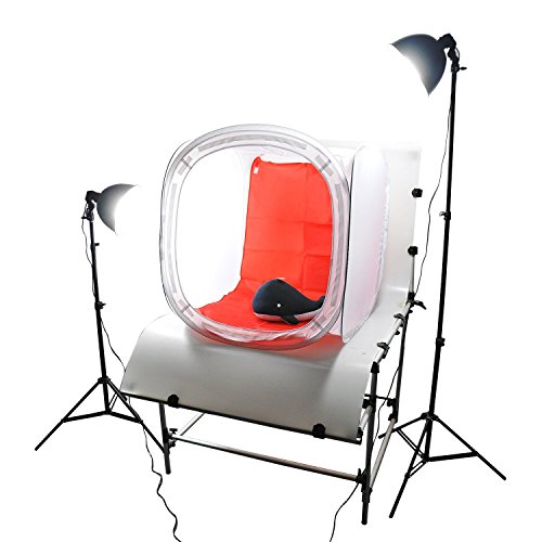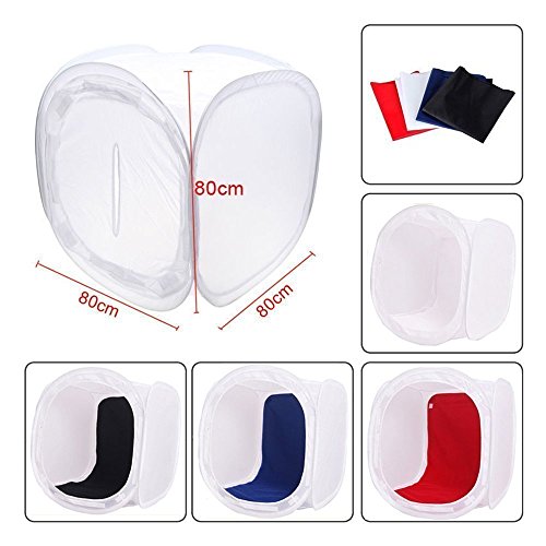 1 Softbox pieghevole: 80cm x 80cm, Include 4 Sfondi: nero / bianco / blu / rosso.Un materiale leggero,risparmio
