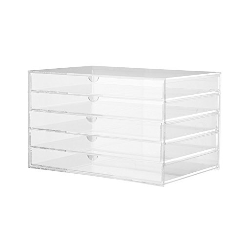 CO-Z Scatola per Trucco Acrilico Trasparente Organizer per Trucco con 5 Cassetti Estraibili per Gioielli Contenitore Cosmetico per Bagno Salvaspazio