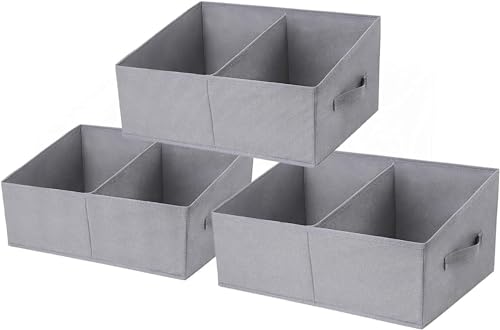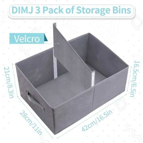 DIMJ Scatole per Armadio, Scatole Portaoggetti Pieghevoli, Cestini Pportaoggetti, 3 Pezzi Scatola di Immagazzinaggio Trapezoidale, Contenitori Portaoggetti Cartone, Classico - Grigio Chiaro