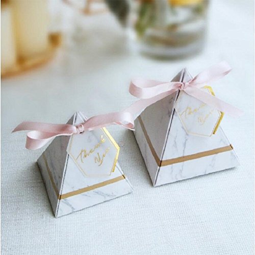 100 scatole per caramelle nuziali con biglietti di ringraziamento, design marmorizzato, a forma di piramide, ideali per feste di compleanno, Non null, Come da immagine, small