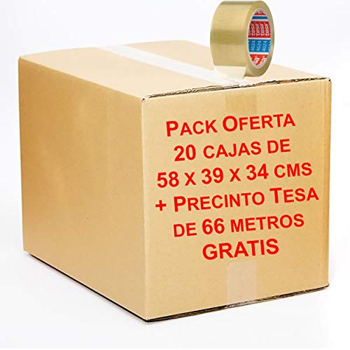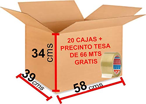 20 scatole di cartone grandi 58 x 39 x 34 cm + 1 rotolo di nastro Tesa da 66 metri in regalo con 5 mm di spessore Scatole perfette per il trasporto di depositi libri giocattoli vestiti scarpe stoviglie spostate ricordi fabbricati in Spagna