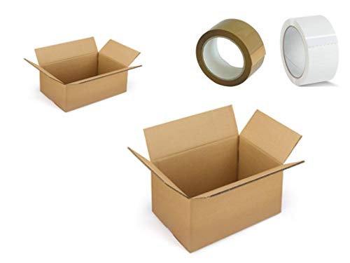 KIT 25 SCATOLE E-COMMERCE:15 SCATOLE DI CARTONE MEDIE 40X30X30 cm +10 SCATOLE DI CARTONE PICCOLE 40x30x10 cm con 1 NASTRO ADESIVO BIANCO +1 NASTRO AVANA