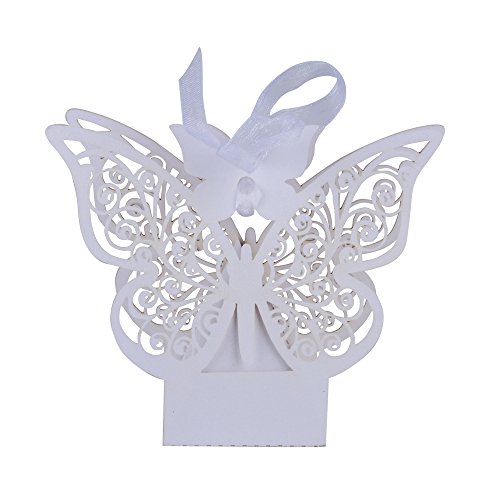 100 pz Scatole Farfalla per Confetti Scatoline Bianco Perlato Bomboniere Portaconfetti Segnaposto Regalo per Matrimmonio Comunione Battesimo