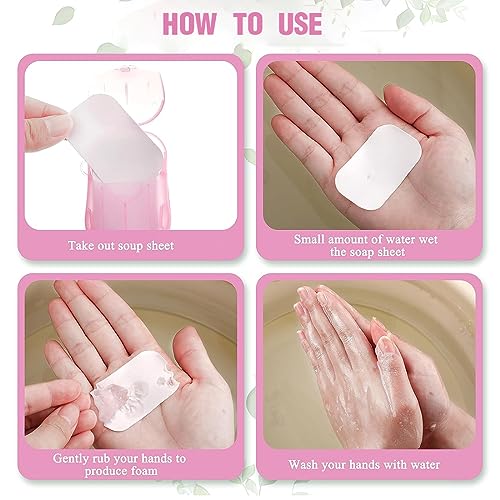 Conveniente e facile da usare: Il sapone monouso può essere utilizzato ovunque non ci sia sapone. Basta tenere il foglio di sapone in mano con le dita asciutte e strofinarlo tra le mani con acqua. Il foglio di sapone si dissolve completamente durante l'uso, consentendo di lavarsi le mani accuratamente.