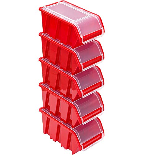 Set di 5 scatole impilabili con coperchio, 195 x 120 x 90 mm, colore: rosso