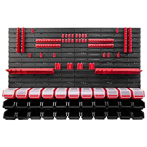 33 scatole impilabili da parete con coperchio in plastica, 115 x 78 cm, per officina, garage, scaffalatura da parete, scaffale porta attrezzi da lavoro, contenitori per garage