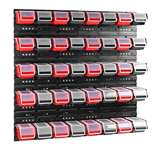 40 scatole impilabili da parete, 80 x 80 cm, in plastica, coperchio per officina, parete degli attrezzi, scomparto per etichette