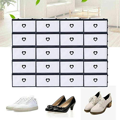 Scatole impilabili per scarpe, con coperchio, 20 pezzi, in plastica bianca, pieghevoli, per una varietà di scarpe, in plastica PP resistente all'umidità