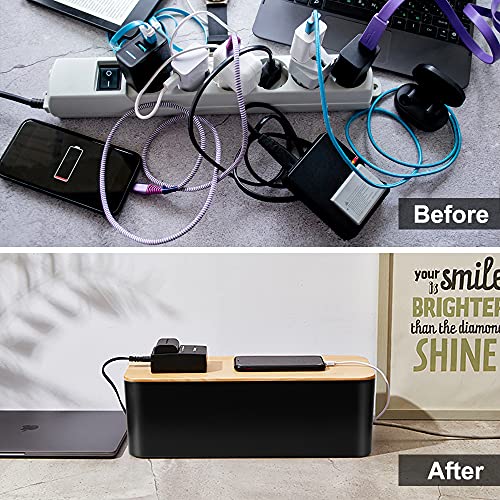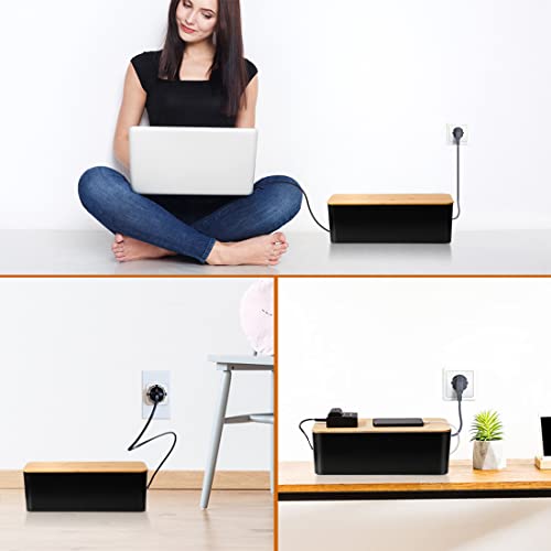 Scatole organizer per cavi in plastica ABS per nascondere e ordinare i cavi, con coperchio di legno, per la gestione dei cavi TV o hub USB, ciabatta di prese elettriche, 2 pezzi