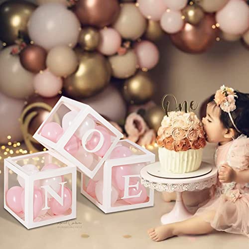 DECORAZIONI PER IL PRIMO COMPLEANNO: utilizzo di scatole di palloncini Staraise ONE per l'arredamento del primo compleanno del tuo bambino. Tre cubi trasparenti indicano "UNA" lettera per indicare questa gioiosa pietra miliare nella vita di tuo figlio, che è il design più unico che diamo a tuo figlio.