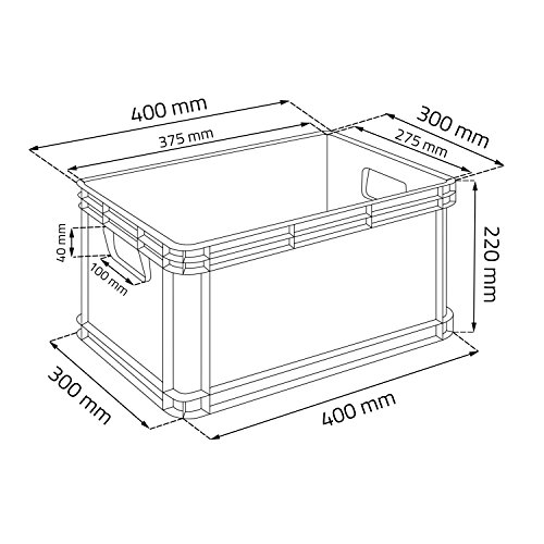 Set di 3 scatole in plastica, grigio, 20 l, scatola per trasnport, resistente Euro-Box