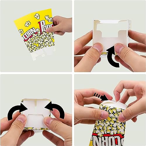 【Facile da Usare】Contenitori Pop Corn L'assemblaggio è molto veloce, Ci vogliono solo 1 secondo per completare l'assemblaggio. Ottieni la scatola e premi gli angoli su entrambi i lati per completare l'assemblaggio. Il prodotto è impilato con imballaggi piatti, che è conveniente per la distribuzione e la conservazione.