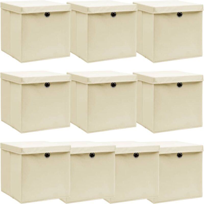 Queste scatole portaoggetti pieghevoli si adattano perfettamente alla vostra casa e offrono un ampio spazio per riporre sciarpe, calzini, biancheria intima, e così via. I pratici contenitori portaoggetti sono realizzati in tessuto non tessuto che li rende piuttosto resistenti. Ogni contenitore è dotato di un coperchio per mantenere puliti gli articoli conservati. Ciascuna scatola portaoggetti è inoltre dotata di un comodo occhiello in metallo che può essere utilizzato per estrarla dall'armadio, dallo scaffale, dal mobile, ecc. Quando non sono in uso, le scatole portaoggetti possono essere ripiegate per risparmiare spazio. Colore: crema Materiale: Tessuto non tessuto (100% poliestere) Dimensioni: 32 x 32 x 32 cm (L x L x A) Pieghevole Coperture incluse La consegna include: 10 Scatole portaoggetti