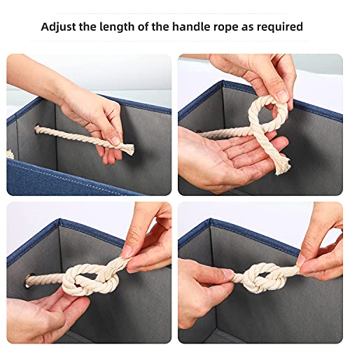 【Manico in corda comoda e regolabile】 Smof contenitore a cubo in tessuto è dotato di due manici in corda di cotone morbidi al tatto e regolabili in lunghezza, che sono comodi per sollevare o prendere fuori rapidamente dalla scatola di stoccaggio. Fare riferimento al metodo di legatura nell'immagine per regolare la lunghezza della corda.