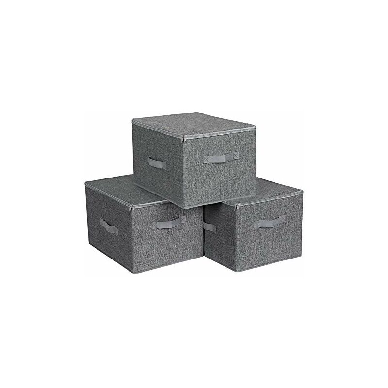 Ognuno ha il suo posto: Ammettiamolo, l'armadio può essere spesso in confusione. Invece di accatastare i vestiti che possono crollare in un secondo, metti tutto in ordine con questo set di 3 scatole portaoggetti Con coperchio: Bisogna riporre abiti estivi fino all'anno prossimo? I coperchi di queste scatole, con cerniera che si apre su tre spigoli, proteggono i vestiti dalla polvere fino a quando non li riprenderai dallo scaffale, sopra l'armadio o sotto al letto Un tono armonioso: Non sono soltanto 3 contenitori per organizzare la tua roba quotidiana;