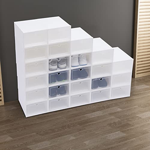 24 scatole portaoggetti per scarpe, in plastica trasparente, impilabile, colore bianco, cassetto a zigzag, per accessori