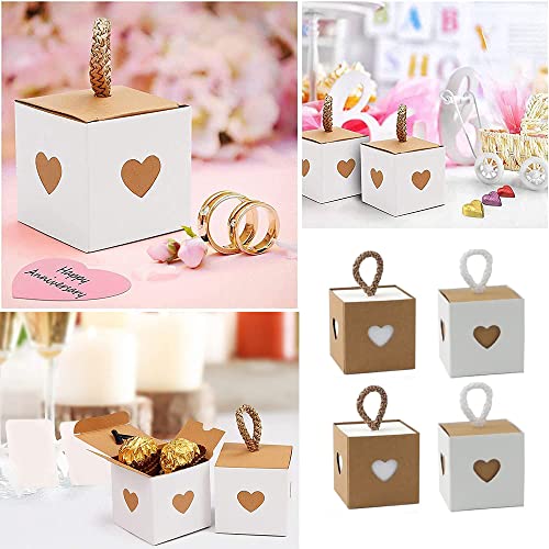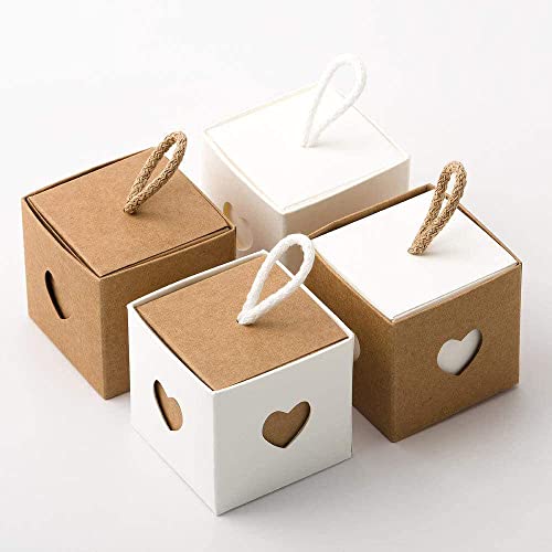 Scatole Regalo Carta Kraft, 24 Pezzi Kraft Scatole Regalo, Scatole Carta Kraft Marrone e Bianco, Creativo Scatola di Caramelle di Carta Kraft per Anniversari, Compleanni e Matrimonio(5.5*5.5*5.5cm)