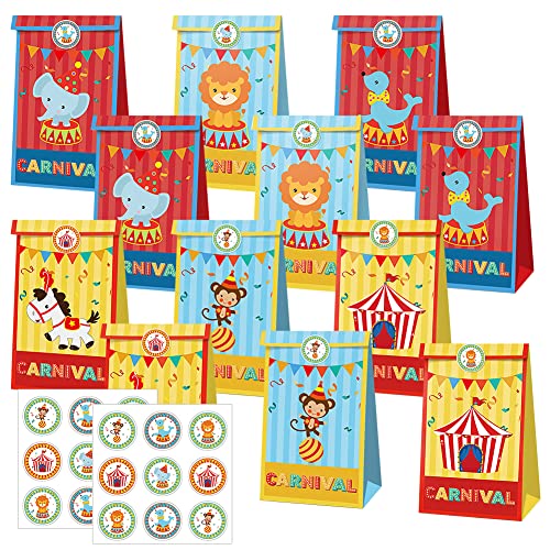【Set di Sacchetti Regalo di Carta】 Include 12 Sacchetto Regalo Compleanno da Circo, 2 adesivi personalizzati, 6 diversi stili di Sacchetto Regalo Compleanno da Circo, soddisfa pienamente i requisiti delle feste a tema di circo per bambini