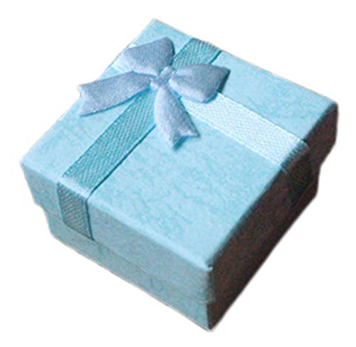 Da.Wa, scatole da regalo quadrate con fiocco, per orecchini, anelli e altri gioielli, 4 x 4 cm, 5 pezzi Sky-blue