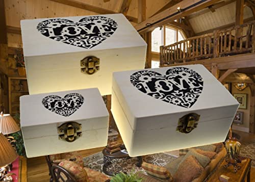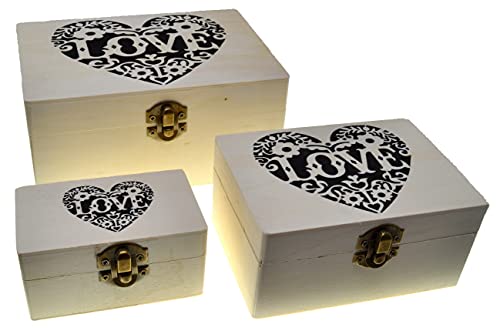 3 scatole rettangolari Amore Scatole nido Scrigno del tesoro (3 confezioni) Scatola del tesoro in legno Portaoggetti decorativo classico Regalo di artigianato in legno scatola di gioielli