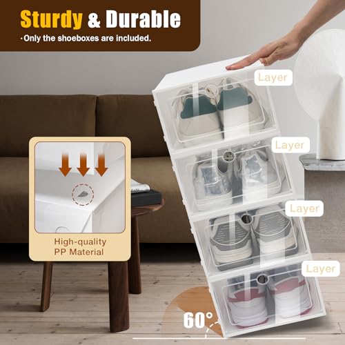 24 scatole per scarpe, impilabili, pieghevoli, in plastica trasparente, con coperchio, per uomo/donna, 33 x 23 x 14 cm