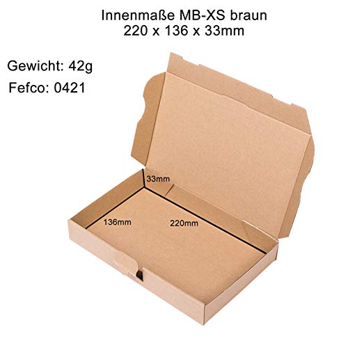 50 Scatole per spedizioni piatte 22,5 x 14,5 x 3,5 cm marroni - MB XS