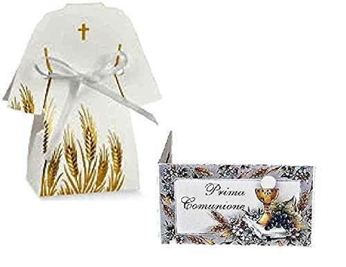 35 Scatole Tunica Prima Comunione Bomboniera Porta Confetti Completa di Nastrino E Bigliettino con Stampa a Colori Made in Italy