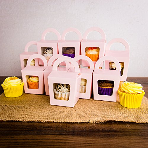Scatoline singole per cupcake con maniglia, colore rosa, 10 pezzi