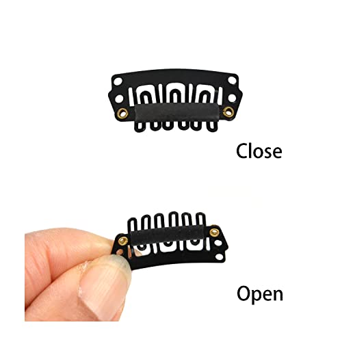 50 clip a scatto in metallo a forma di U, 28 mm, a 6 denti, per extension per capelli, clip per extension per capelli (nero)