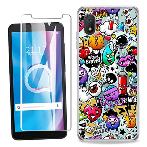 SCDMY Custodia per Alcatel 1B 2020 Cover + Vetro Temperato, Trasparente Silicone TPU Morbido Custodia Protezione Case Copertura Cover Pellicola Protettiva per Alcatel 1B 2020(5.5") - XS40