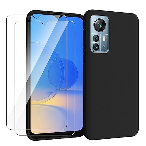 SCDMY Custodia per Blackview A85 Cover + [2 Pezzi] Pellicola Protettiva in Vetro Temperato, Black Morbida Custodia Forte protezione Case Cover Silicone TPU Copertura (6.50")-Nero