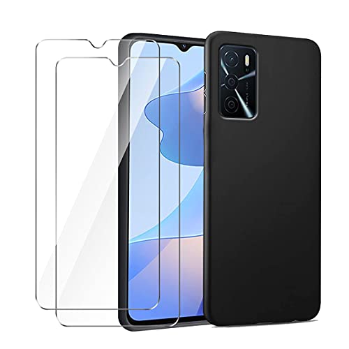 SCDMY Custodia per Oppo A16 Cover + [2 Pezzi] Pellicola Protettiva in Vetro Temperato, Black Morbida Custodia Forte Protezione Case Cover Silicone TPU Copertura (6.52")-Nero