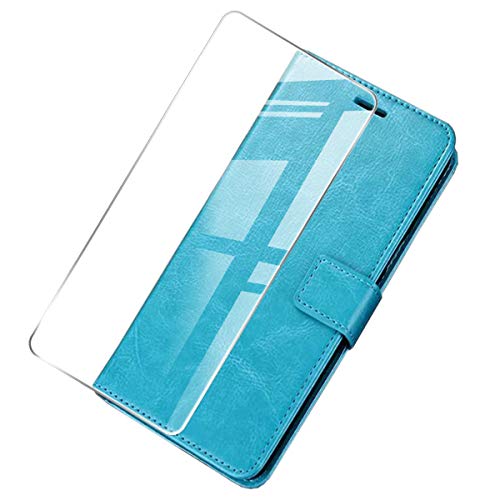 SCDMY Custodia in Pelle per Oukitel C18 PRO Caso + Pellicola Vetro Temperato, Silicone Flip PU Pelle Cover Protettiva Caso Portafoglio con Carta Slot Funzione Supporto Stand Case Custodia - Blu