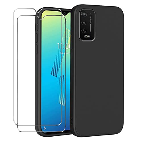 SCDMY Custodia per Wiko Power U20/Wiko Power U10 Cover + [2 Pezzi] Pellicola Protettiva in Vetro Temperato, Black Morbida Custodia Forte Protezione Case Cover Silicone TPU Copertura (6.8")-Nero