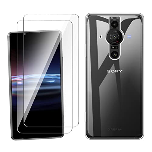 SCDMY Custodia per Sony Xperia PRO-I Cover + [2 Pezzi] Vetro Temperato, Trasparente Silicone TPU Morbido Custodia Protezione Case Copertura Pellicola Protettiva(6.5") - Clear