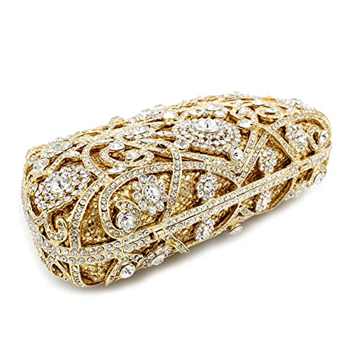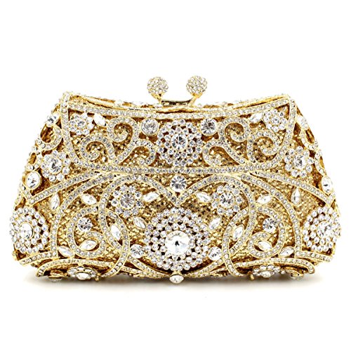 Snow scene Borsa con Strass, Sacchetto per Cena di Cristallo di Metallo Wispy Trade straniere con Borchie con Borchie (Color: Golden)
